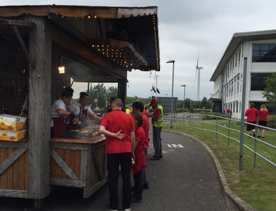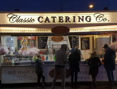 Here are a few photos of us in action at some of the venues we cater for across the UK. You can get a sneak preview of our very popular swing grill cooking some delicious sausages to us showcasing our wide range of sweets on our custom made stalls.